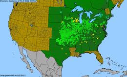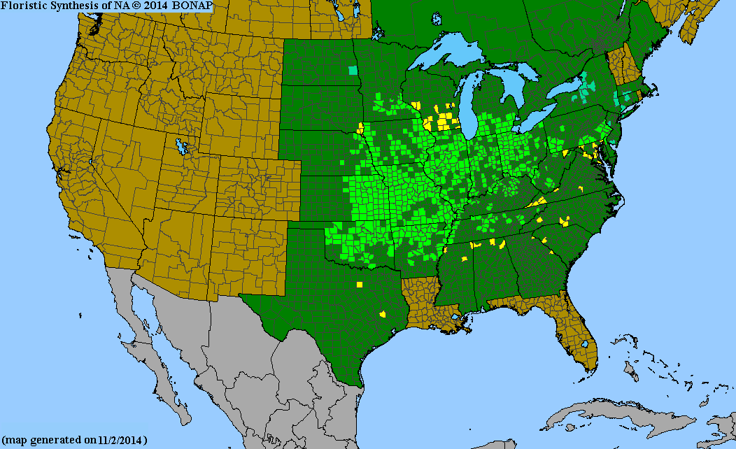 BONAP Native Range Map. Bright green indicates native to the county, dark green indicates native to the state.